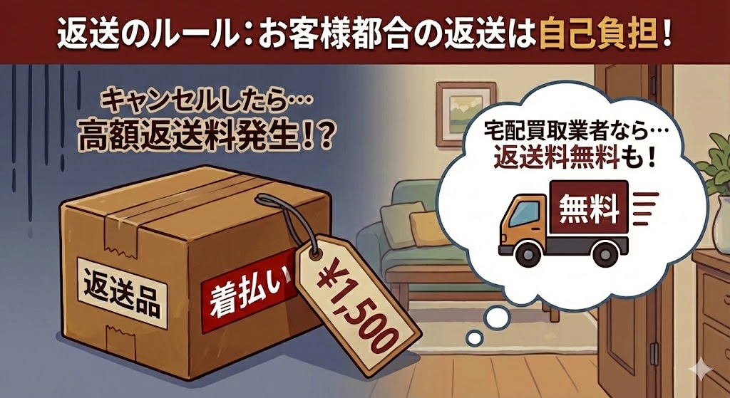 返送のルールを押さえよう:査定不満時は無料、お客様都合の場合は自己負担