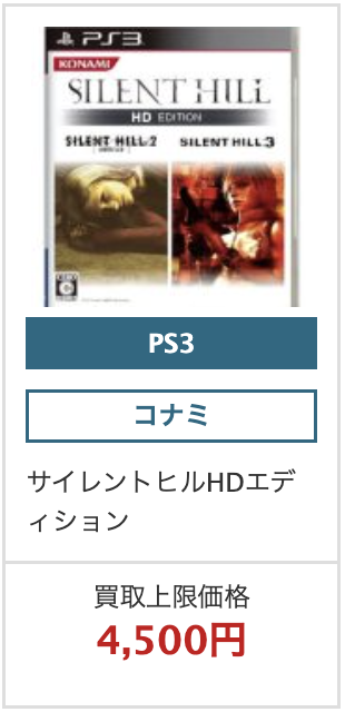 | サイレントヒル HD エディション | 3,000円 〜 4,000円 | 4,500円 |